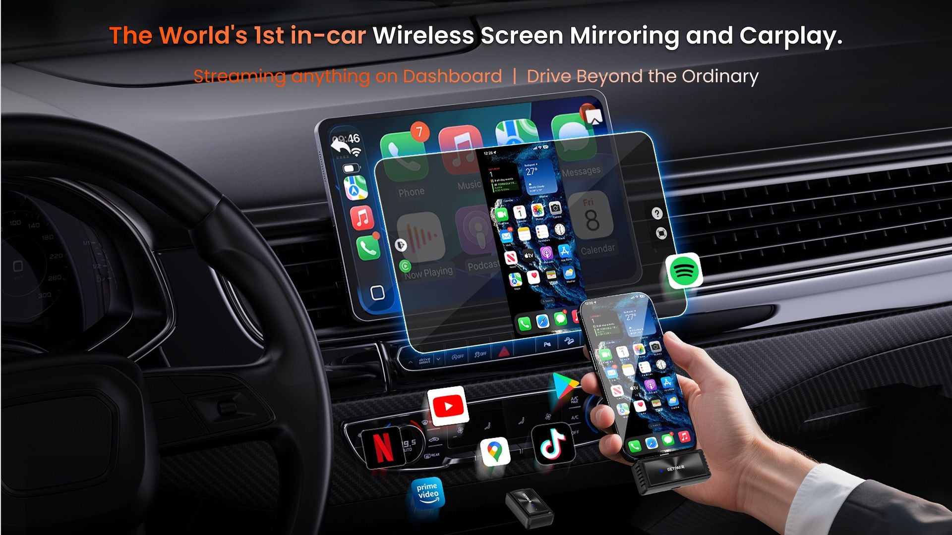 - Einfache Einrichtung: Stecken Sie die Adapter in Ihr Auto und Telefon, um sofort mit der Spiegelung zu beginnen.