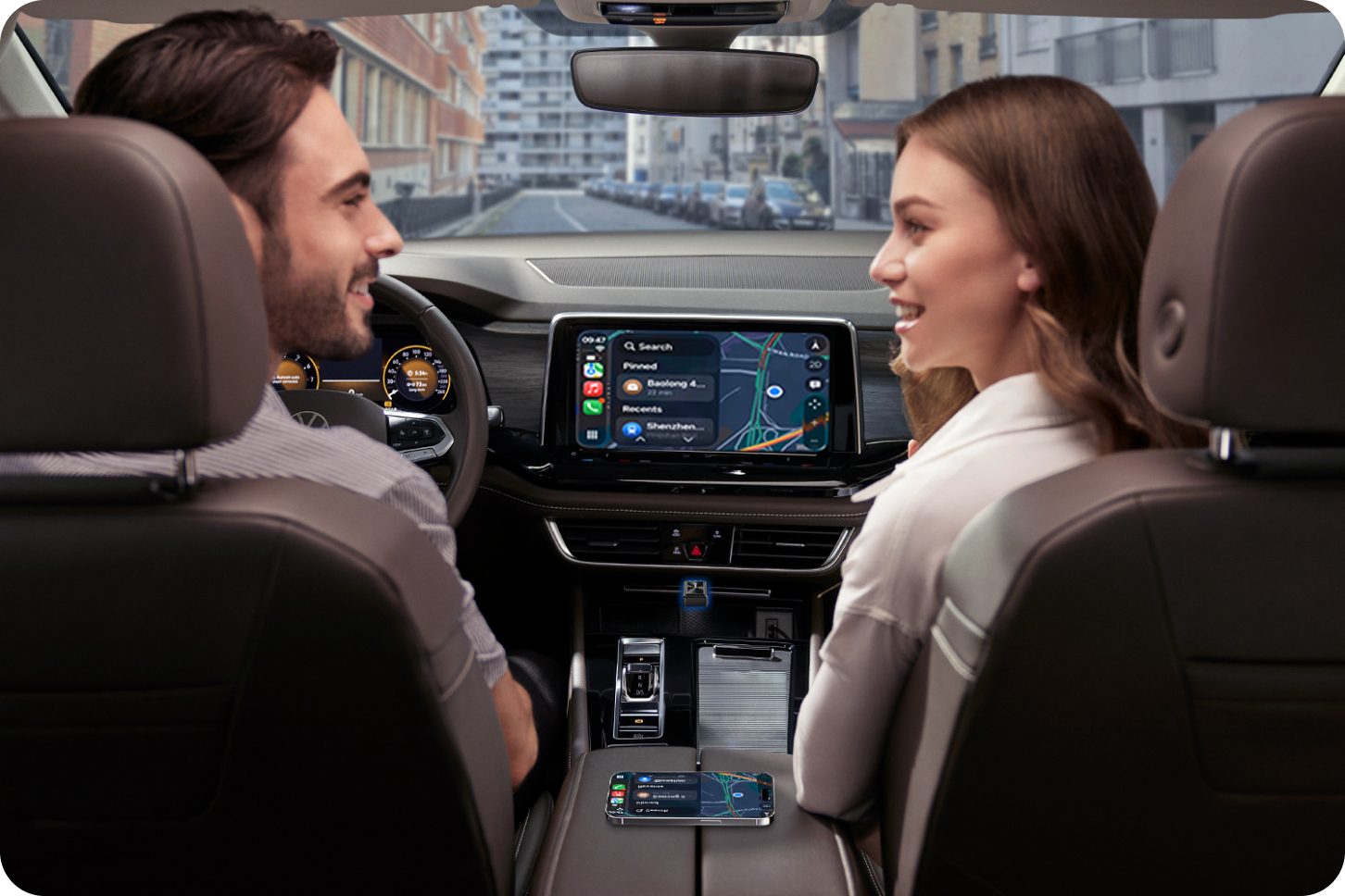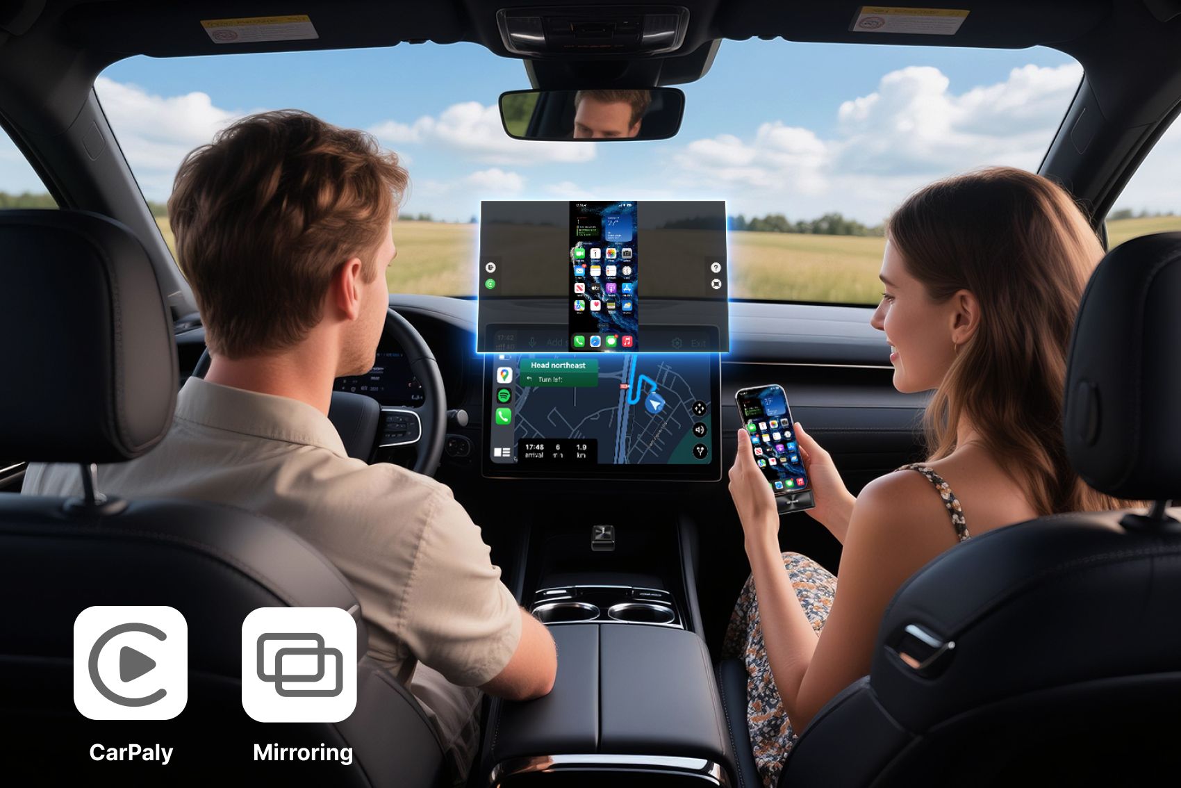 - Volle Telefonspiegelung: Spiegeln Sie Ihren Telefonbildschirm auf dem Auto-Display für einfachen Zugriff auf Navigation, Musik und Apps.