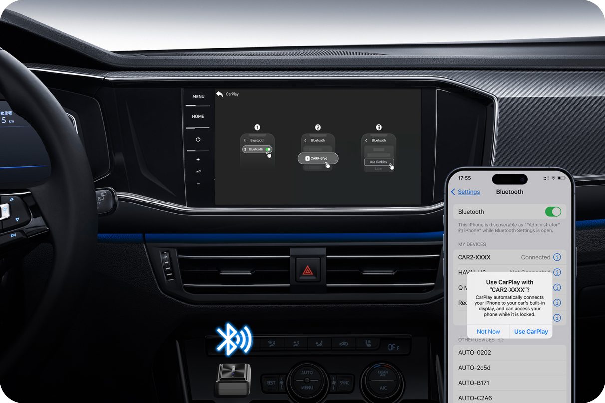 - Drahtlose Freiheit: Genießen Sie Wireless CarPlay mit einer sauberen, kabellosen Verbindung.