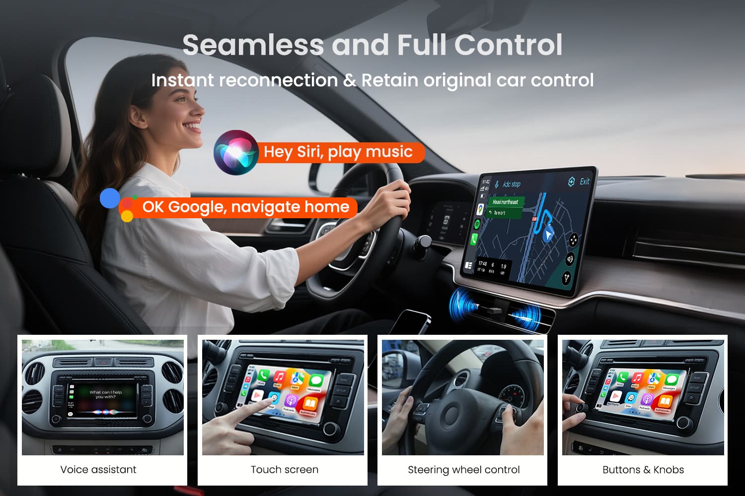 - 2 en 1, convierte tu Wireless CarPlay y Android Auto a inalámbrico en segundos.