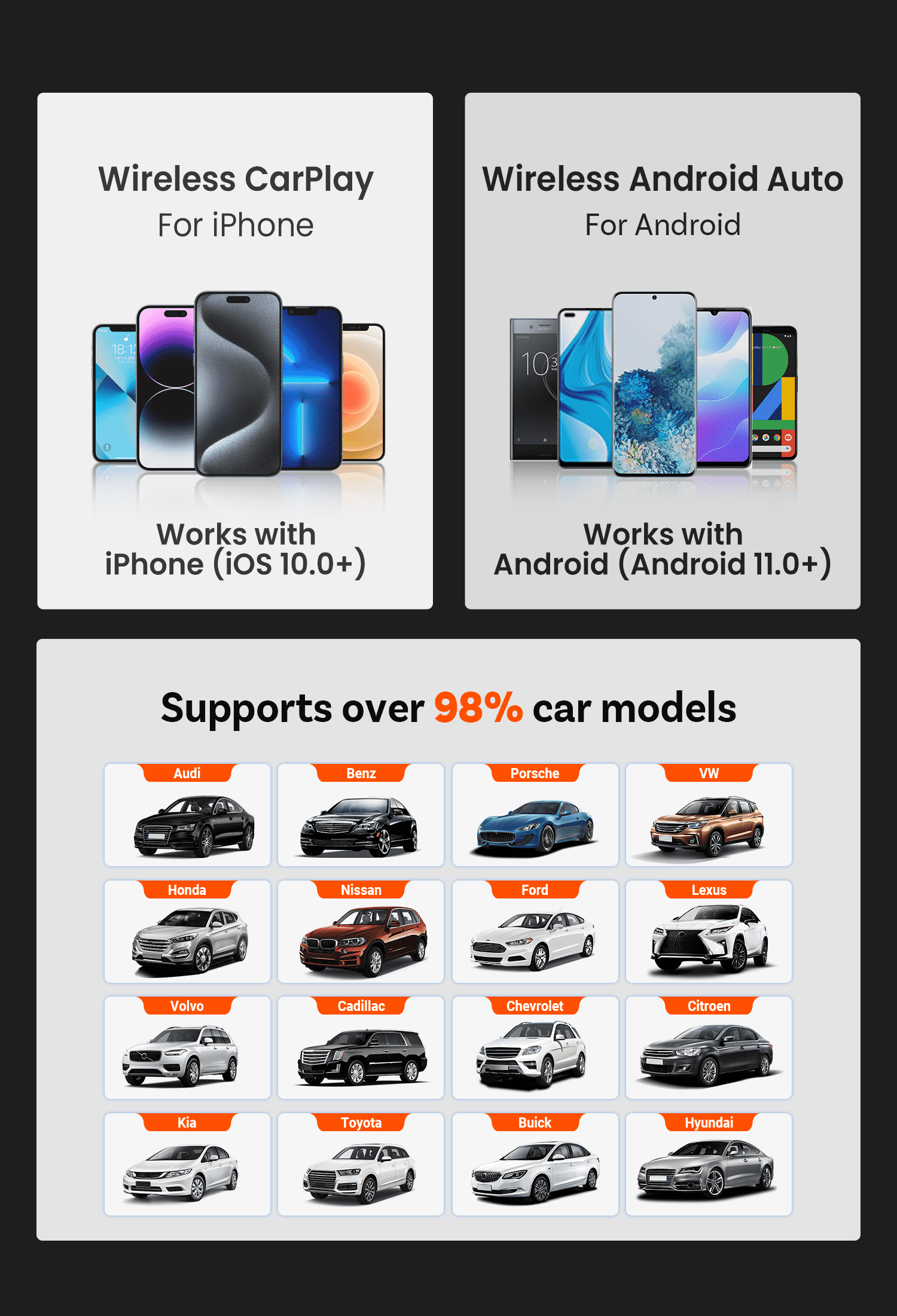 ✔️CarPlay/Android Auto filaire 2 en 1 vers sans fil