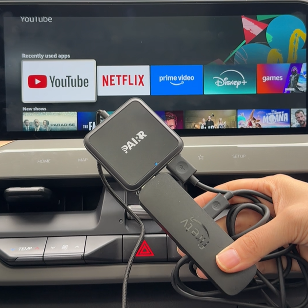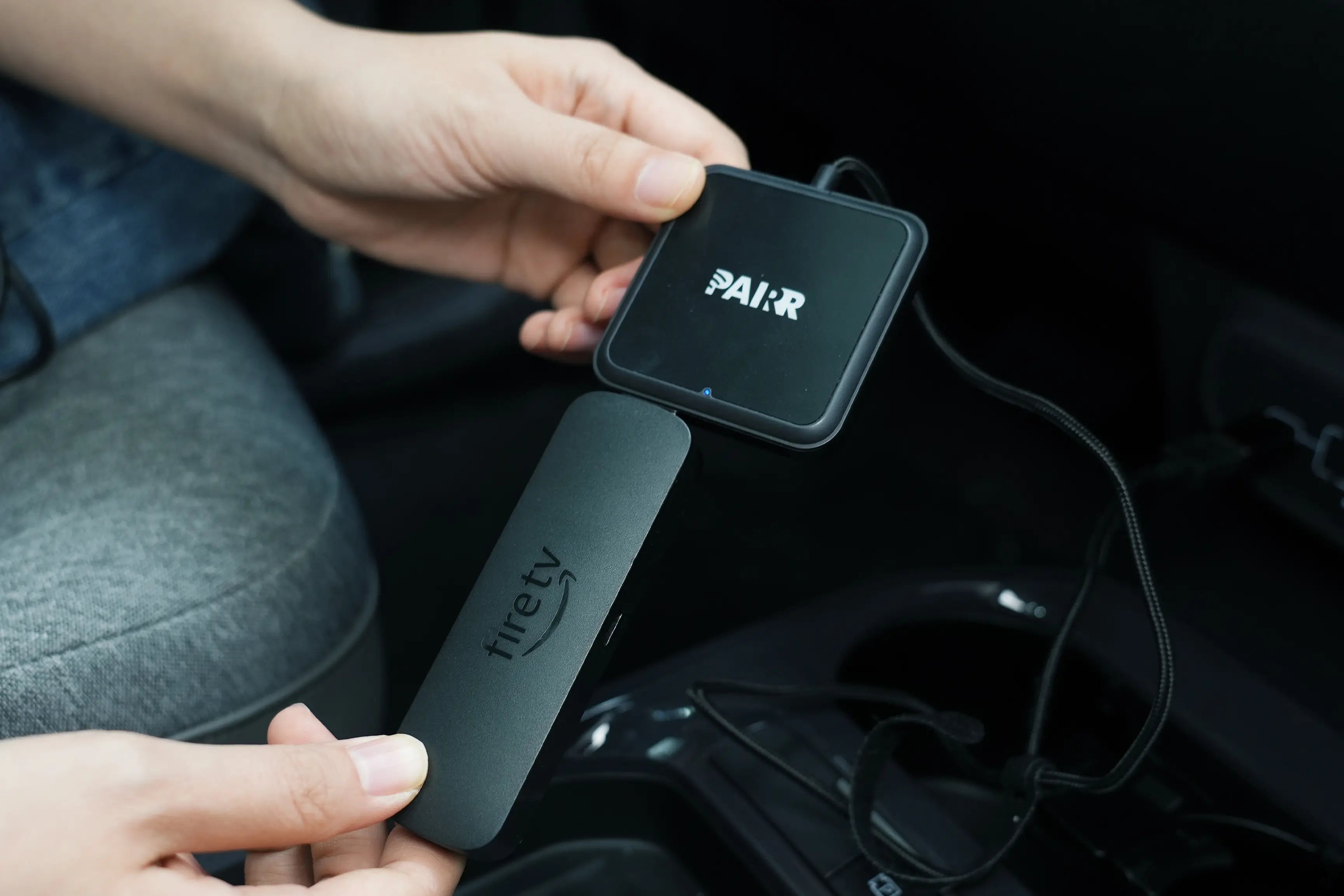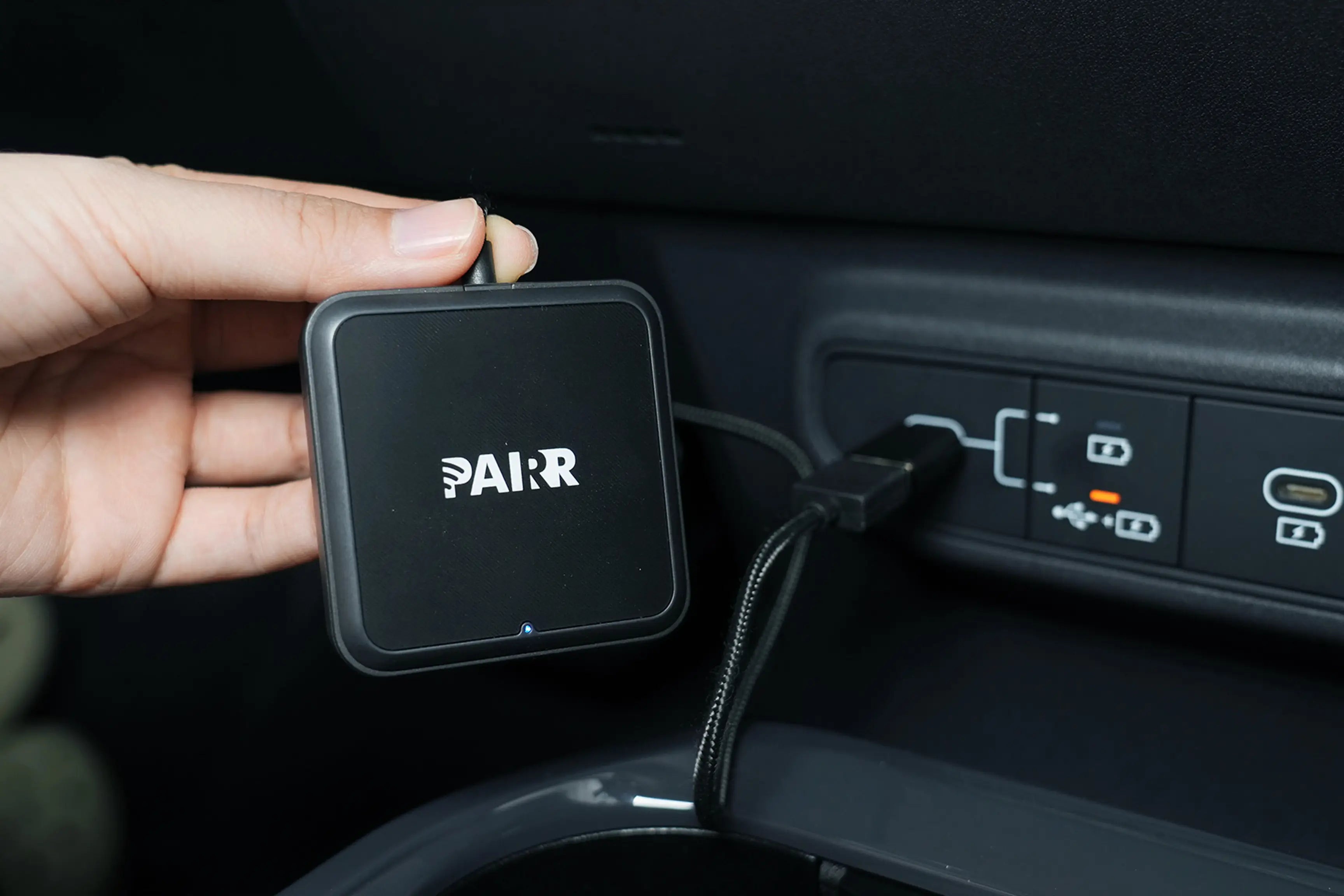 Collega il Pairr TV a una porta USB o USB-C nella tua auto per CarPlay o Android Auto.