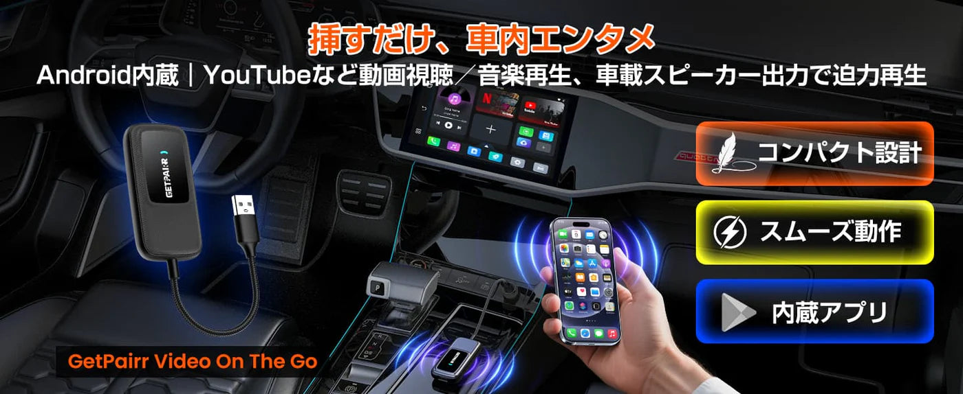 GetPairr® Go-App Hub 搭載オールインワン無線 CarPlay & Android Auto アダプター